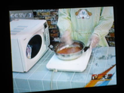 さらに違うチャンネルでは料理番組をやってました。が、作ってるのが何かイマイチわからない。巨大な乾燥コンブを戻して(これだけで大きなボウルがいっぱいに)、それをミキサーにかけて、さらにヒメリンゴみたいなのを投入し、一緒にドロドロにして電子レンジに放り込んでます。何を作っているのでしょうか?正直な話、知りたくもありません。