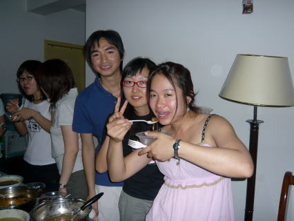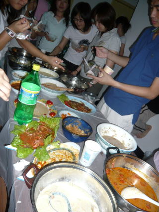 そして夜には留学生の子の部屋でみんなで打ち上げ晩ご飯会がありました。これが本当に最後ってことで、みんなの作る料理にも気合が入っています。いつも以上に品数も多いし、いつも以上に美味しい気もする♪Jinshuiも3品作ってました。てかみんな私の好きな料理ばっかだったw幸せだぁ~!
